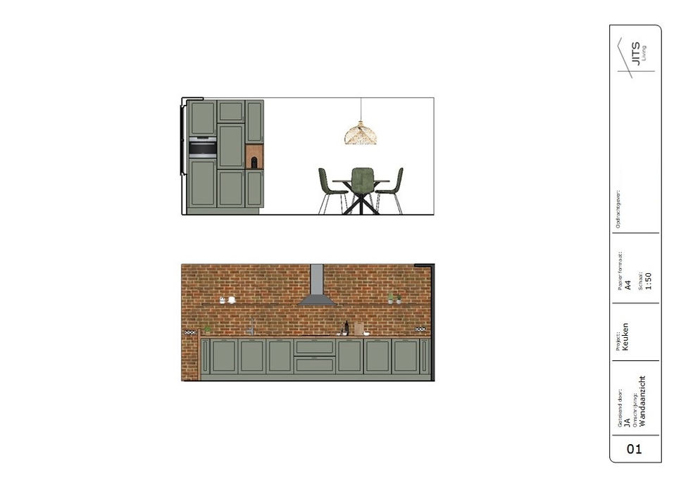 Voor deze opdracht mocht ik de keuken visualiseren. De klant wou graag haar ideen op papier laten zetten. Samen hebben we gebrainstormd en hier kwam het volgende uit. Een landelijk stoere keuken. Zie hieronder de tekeningen en hetfilmpje.